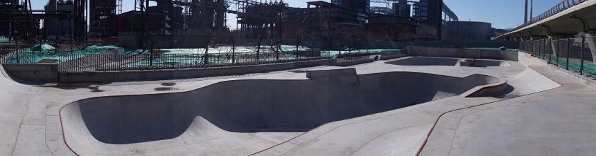 首鋼滑板公園位于北京石景山區,距離地鐵一號線西端的蘋果園站大概3站地的距離,項目總占地面積17913平米,其中滑板區、攀巖區各占地約4000平方米,這個新建的滑板場屬于國內大型場地。