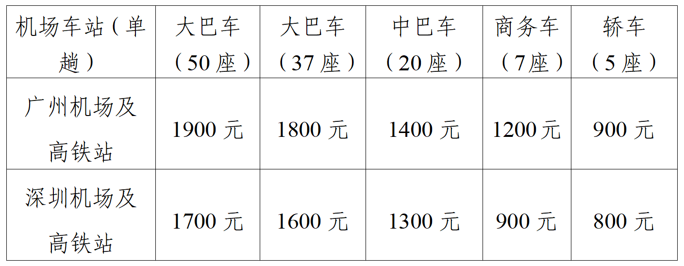 2.交通中轉保障。參賽單位原則上從始發地直達惠州賽區,不在廣州、深圳賽區經停和中轉。確需在廣州、深圳賽區轉換交通工具前往惠州賽區的,可在抵惠前10天與滑板競委會工作人員聯系,提供迎送站信息。費用標準如下:
